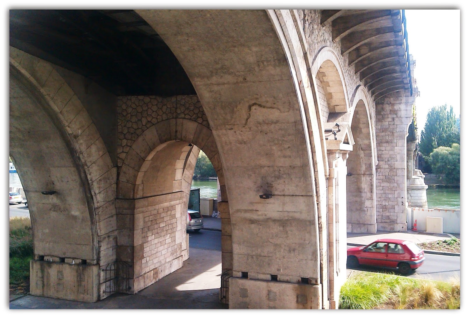 Este puente comunica Levallois con Courbevois, lado Norte. Por debajo pasa otra carretera que sigue la línea del río, y hay una escalera de caracol por la que se puede bajar hasta aquí. Bajando por ésta escalera, he tomado las fotos que pongo a continuación.